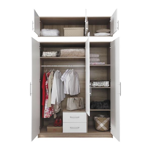 Skříňový systém Smart nabízí širokou škálu skříní a nástavců, ze kterých snadno sestavíte požadované úložné prostory. Nábytek je vyroben z kvalitní laminátové dřevotřísky o síle 16 mm.