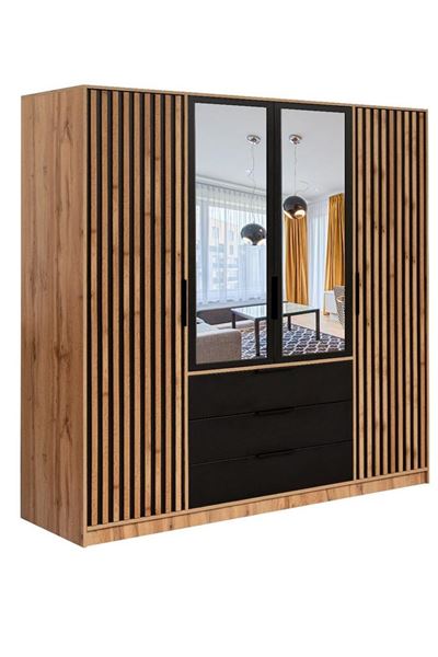 ŠATNÍ SKŘÍŇ BALI LUX D4 196/200/58 DUB WOTAN/ČERNÁ