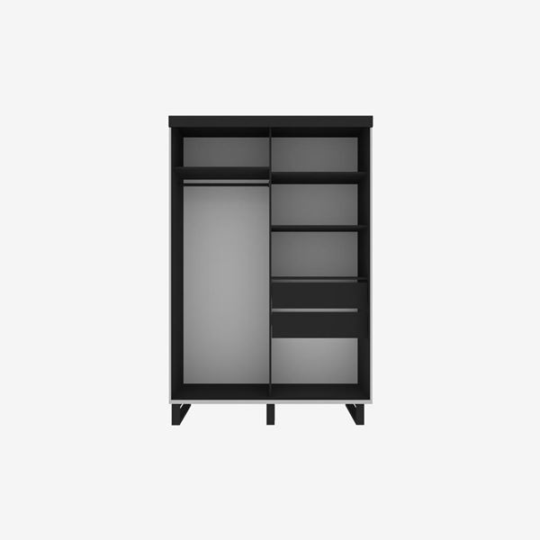 ŠATNÍ SKŘÍŇ SILVER 150/226/62 SE ZRCADLEM ČERNÁ+STŘÍBRNÁ