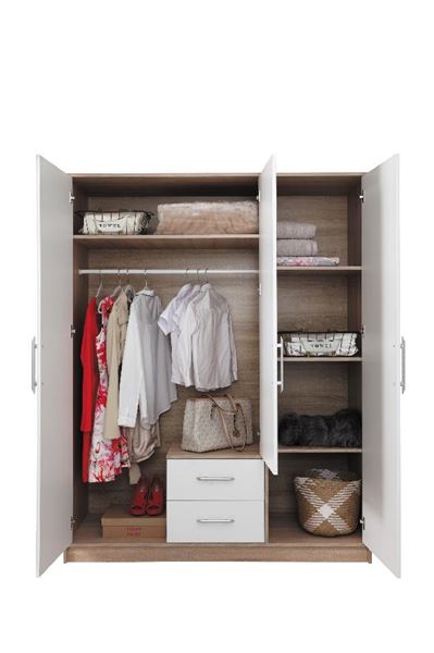 Skříňový systém Smart nabízí širokou škálu skříní a nástavců, ze kterých snadno sestavíte požadované úložné prostory. Nábytek je vyroben z kvalitní laminátové dřevotřísky o síle 16 mm.