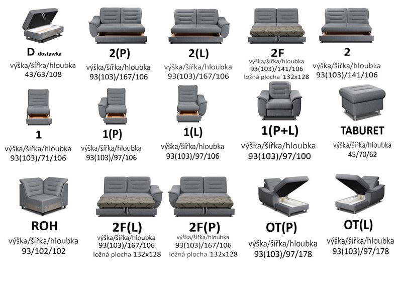 SEDACÍ SOUPRAVA BELLI 1-R-2F všechny látky 269x199